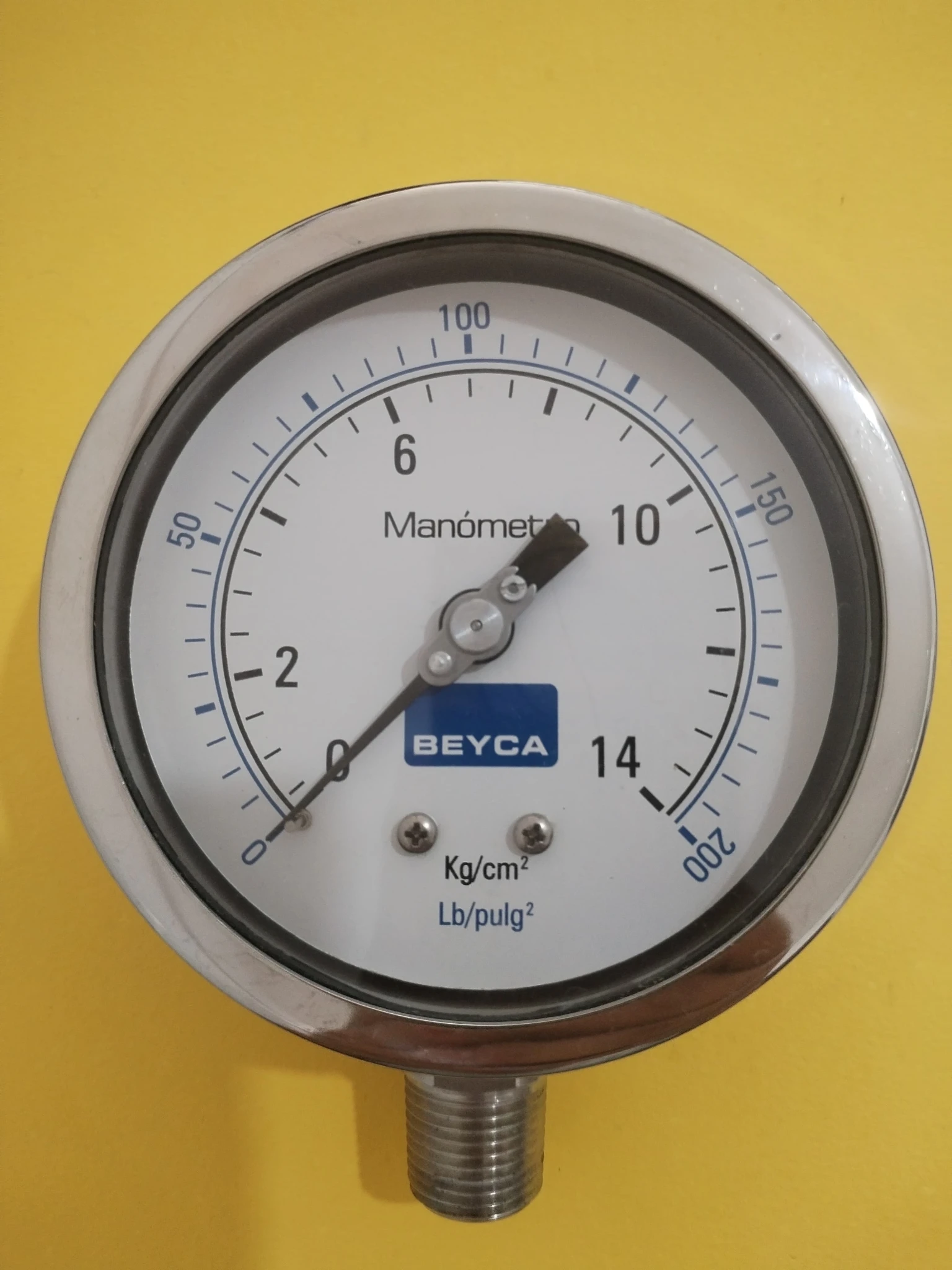 Manómetro Full Inox Dial 100mm Conex: Inf.1/2" NPT 0,4,7,10,14Kg/cm2 BEYCA