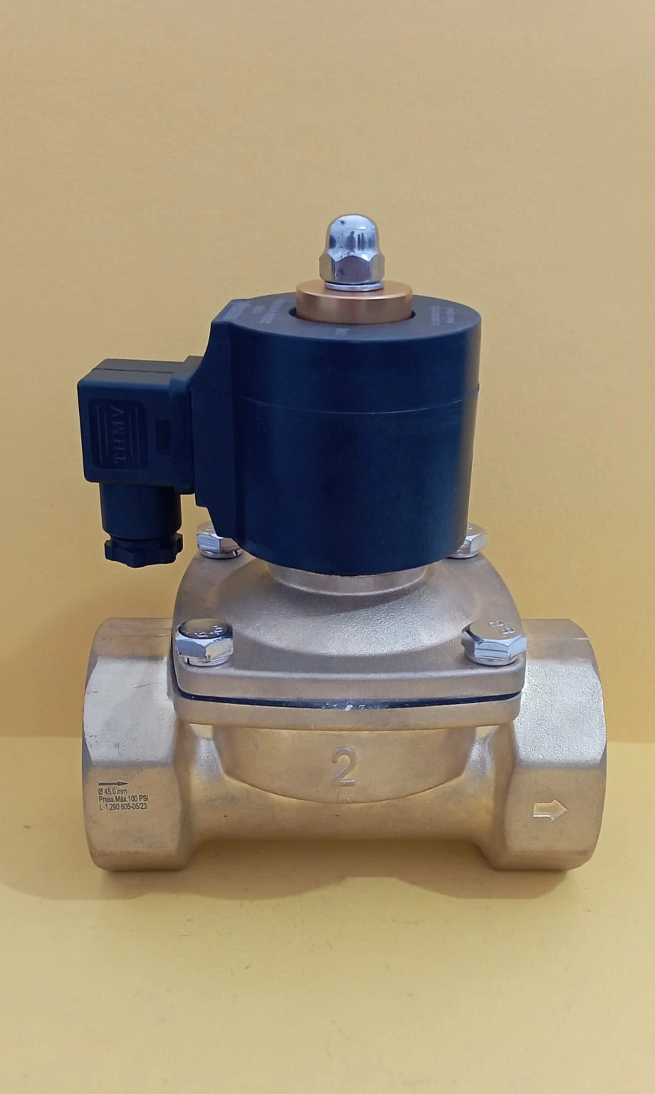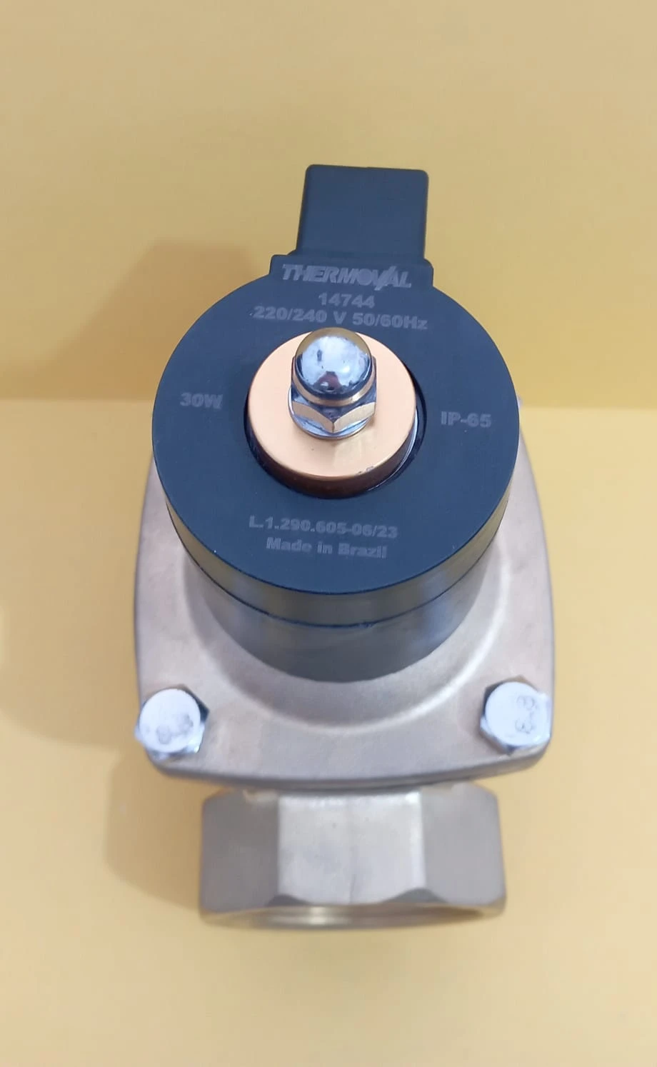Válvula solenoide 220V Mod 14744 NC Cuerpo: latón P: Agua/aire/gas Conex: 2"BSP PMO: 7Bar (100Psi) THERMOVAL Ind. Brasilera