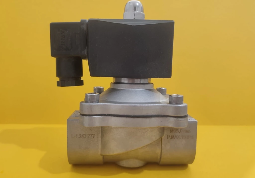 Válvula solenoide Inox Mod. 28338 P/Lubricantes/Aire/Gas/O2 Conex. 1"NPT PMO: 10Bar -25°+130°C THERMOVAL Brasil